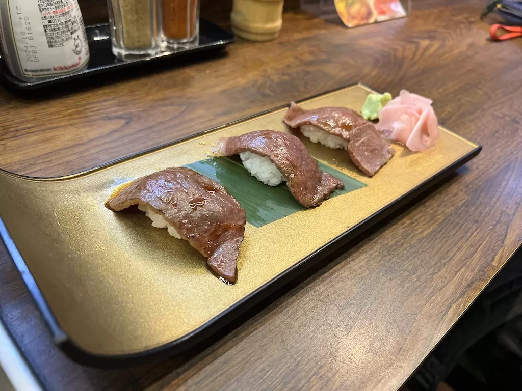 It is said that the Daruma Restaurant is the first restaurant that prepared the Kushikatsu cuisine in 1929. But I randomly walked in Oyajino Kushiya Honten, which is a restaurant that comes with plenty of retro vibes. A classic Volkswagen van sits inside the restaurant and the atmosphere was hip. Besides the kushikatsu, I also had some sushi and an udon. While I would not say that I liked the food very much, it was a special experience.
