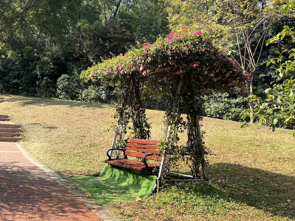 I took the subway and arrived at the northwestern gate of Lianhuashan Park. As soon as I entered the park, I felt this sense of openness and wholesomeness right away. The park features well-maintained, broad and paved pathways, with many beautiful park installations.