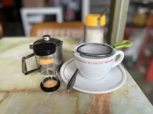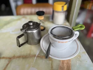 Since 1965, Sei Kee has been making its famed clay pot coffee, brewed over open charcoal fire, to the satiation of Macau’s commoner palate. This coffee making technique continues to this day. The owner sets up the coffee making at 5am each morning. As the coffee ground swims within the swirling motions of a claypot brew, the slowness of the charcoal fire engenders a full infusion of the coffee’s flavor and pungency.