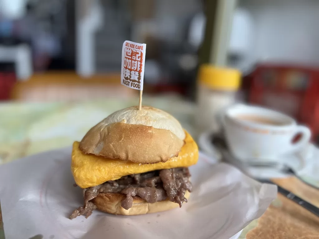 From the HZMB Macau Port, I arrived at Sei Kee Café, hoping to get the famous pork chop buns at the restaurant. However, I learned that this Sai Kee does not serve its famous pork chop buns. Instead, I ordered a beef and egg sando and it turned out to be fantastic.