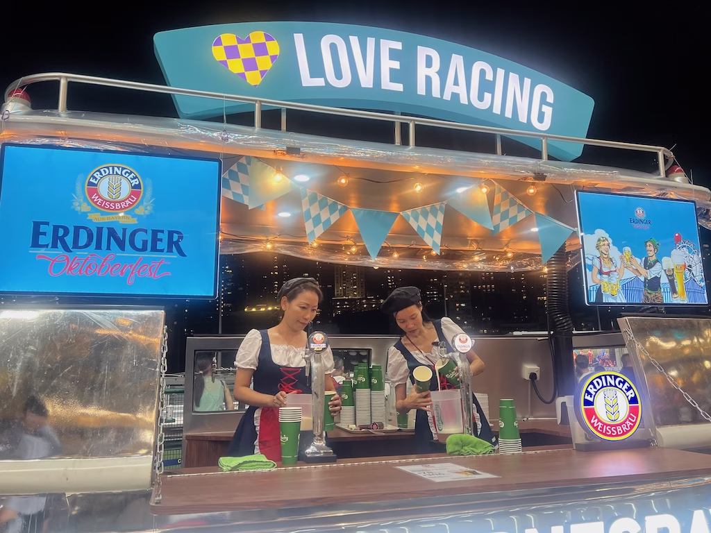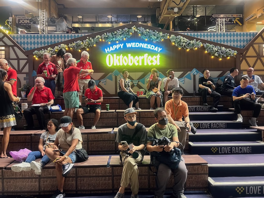 Lying between the tracks and the spectators’ grandstand are a stretch of businesses that supply the party food for the evening. Food choices are never lacking, although all food are priced at a premium, even for the McDonald’s there.