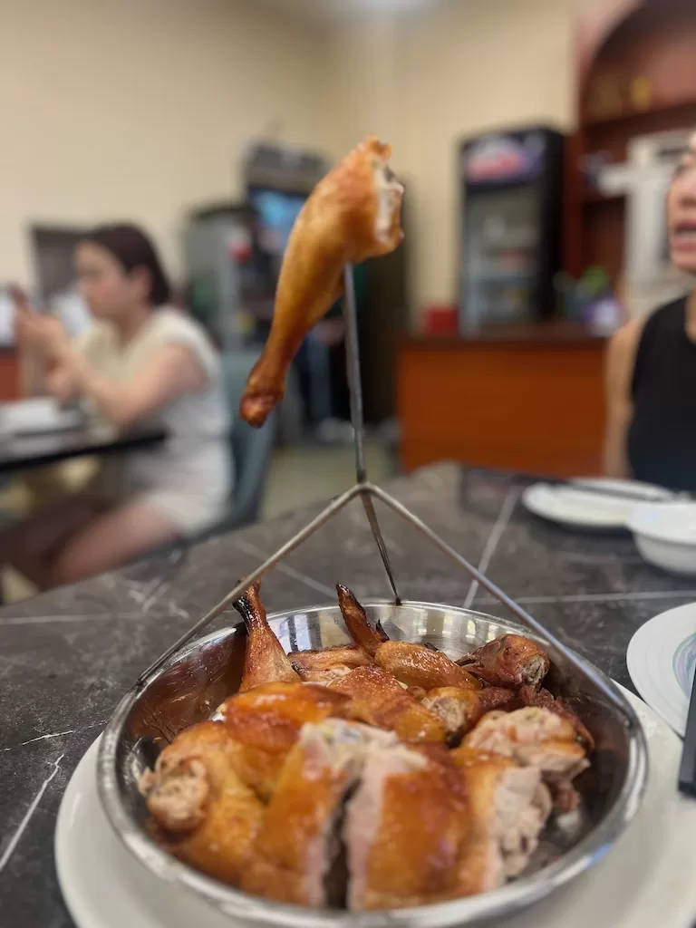 The Mingqi Restaurant receives very good reviews. It is headed by an award-winning chef, who specializes in making baked chicken. Our set for two came with what we liked very much, serving a whole chicken, an oyster pancake and veggies. The chicken was perfectly done with crispy skin. It was well flavored and not too dry.