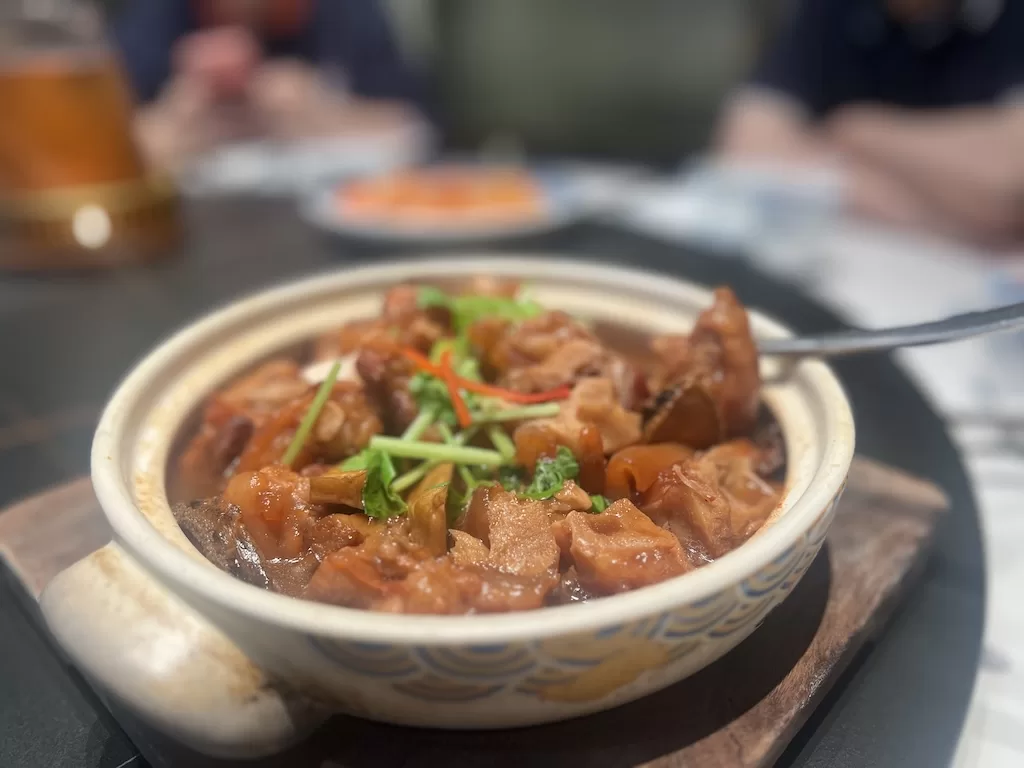 This restaurant specializes in fresh abalone cooked with chicken and served in a hot pot. The flavors are quite good. There is a selection of abalone in different price ranges and you order the abalone by the piece. The menu does not come with too many choices, however. The absolute highlight of the meal is actually the brown sugar steamed cake, called Malagao in Chinese, and certainly a Cantonese favorite as far as dessert goes. Yes