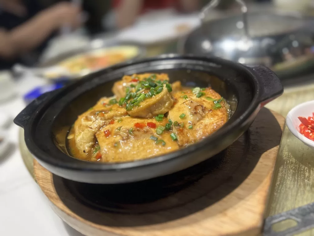 This restaurant serves Shunde cuisine, and its specialty is the steamed pot. Fish or seafood is cooked right at the table with a steamer. The essence of the food cooked on the top level will seep into the congee base at the bottom stack. Yes