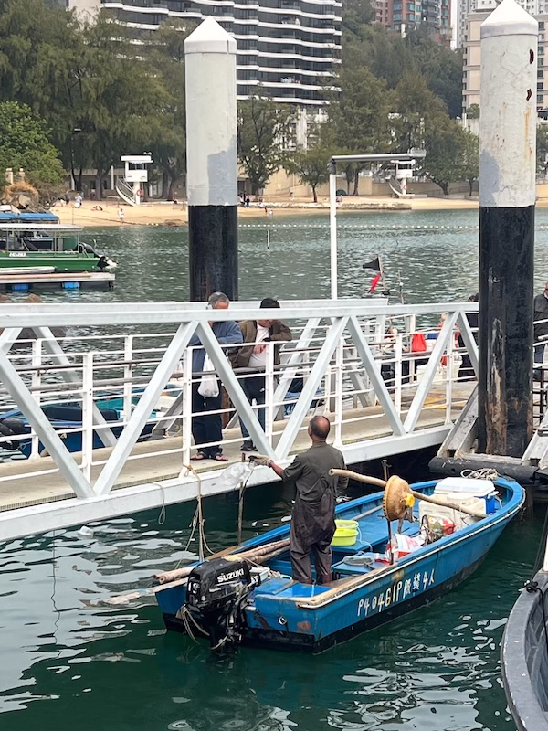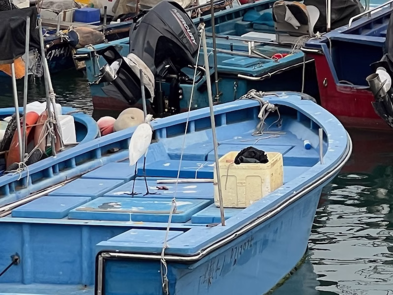 At the Sam Shing Waterfront Promenade I was pleasantly surprised to see some pretty unusual views in Hong Kong’s urbanized landscape. Quite a few fishing boats docked there in the afternoon, along with some medium-sized cargo vessels.