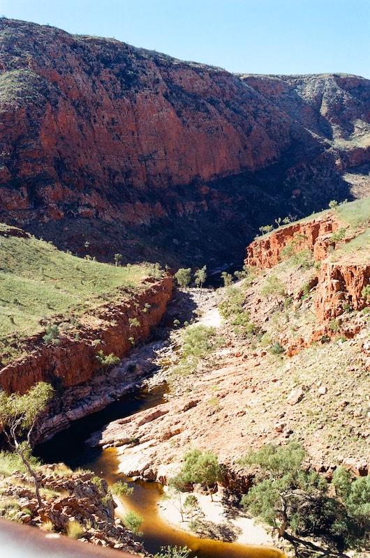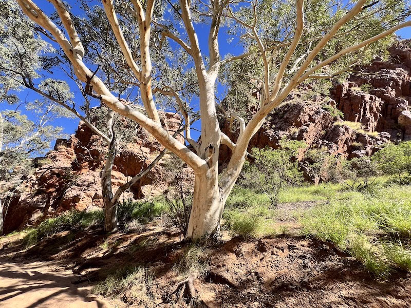 The Red River Gum trees that we see today (at Trephina Gorge) are there because after a century or more the nature of East Macdonnell recovered from the heavy logging of the Red River Gum trees in East Macdonnell. The Red River Gum Trees are naturally hollow. The colonists learned from the aborigines’ heavy use of this tree to build their homes, first firing the hollows of the bark. They could be used for roofing.