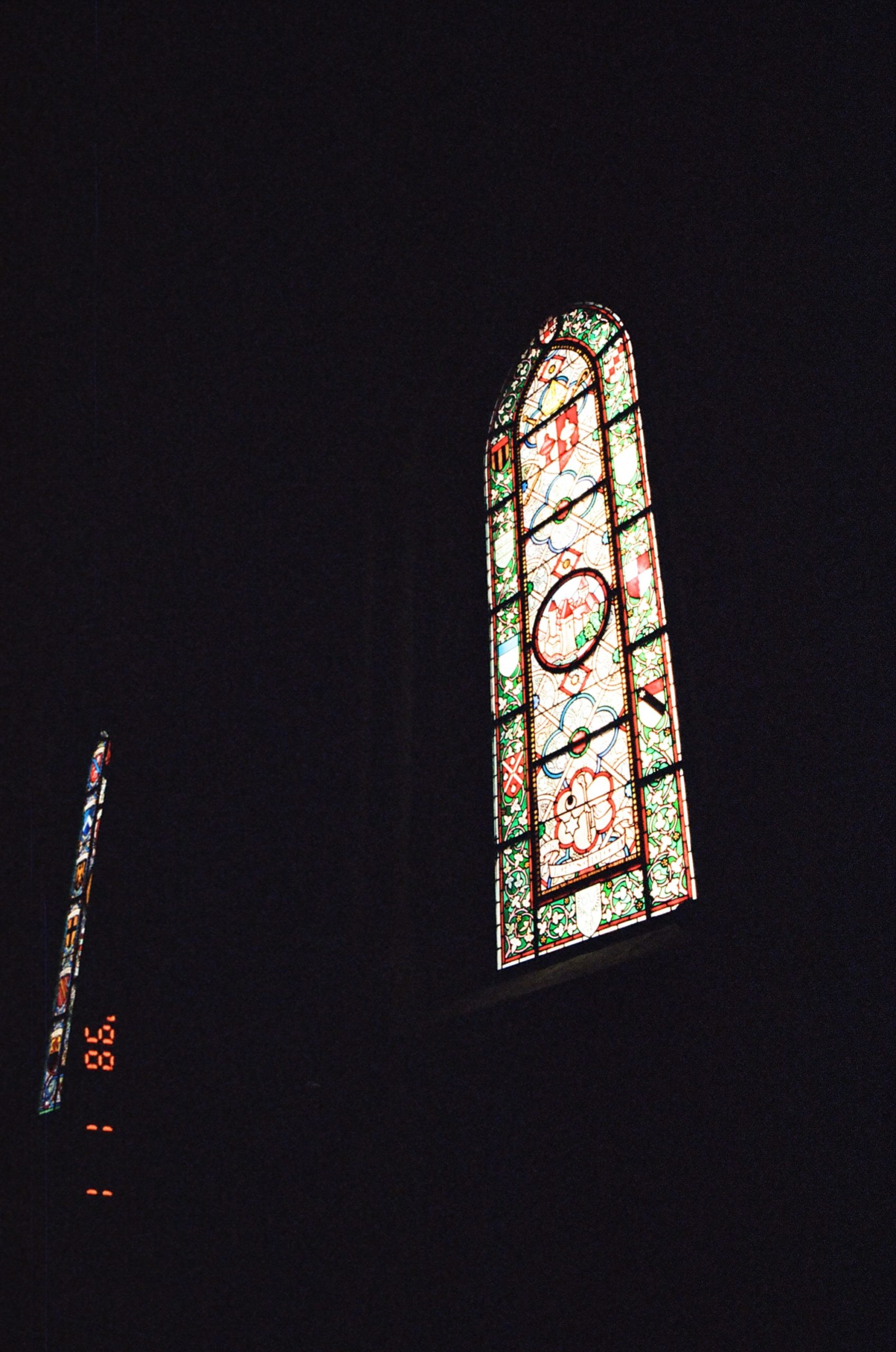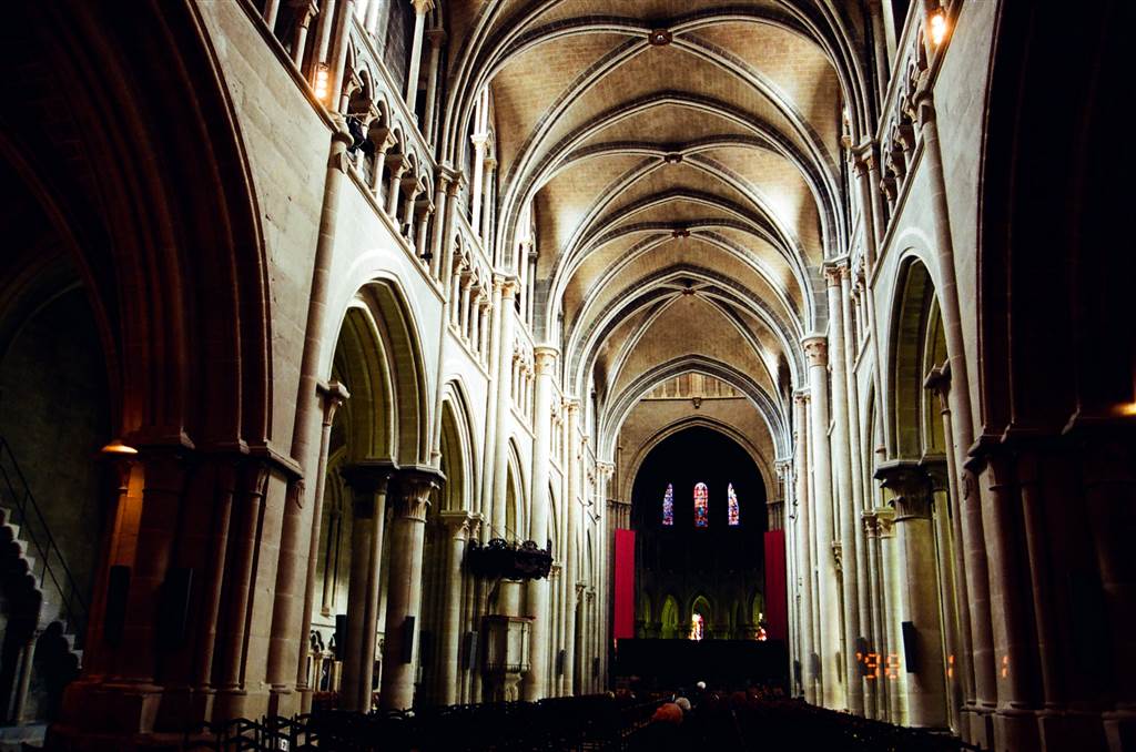 I have little understanding of the architectural and interior features of the Cathedral, but I did notice the beautiful windows with colorful panes. The decorated windows depict the “medieval view of the world arranged around the figure of God the creator.”[2]
