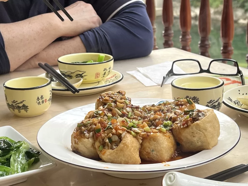As with always, we went to the restaurant that Xiaohuang recommended here. The food was truly good. But perhaps the most enjoyable aspect of dining in the village was being able to eat by the river with great views.
